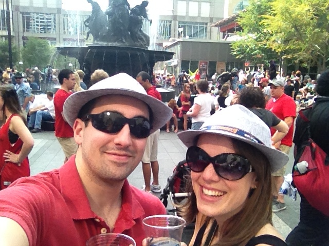 People in groups of three, four and five just strolled down the street, steins in hand, talking and laughing and drinking, before finding the next tent to refill. We took our time walking past the tents, choosing very carefully which vendors we should go back to for lunch and dinner. We waited in line at the Sam Adams’ blind beer-tasting tent so we could win ourselves a couple fedoras and feel festive.