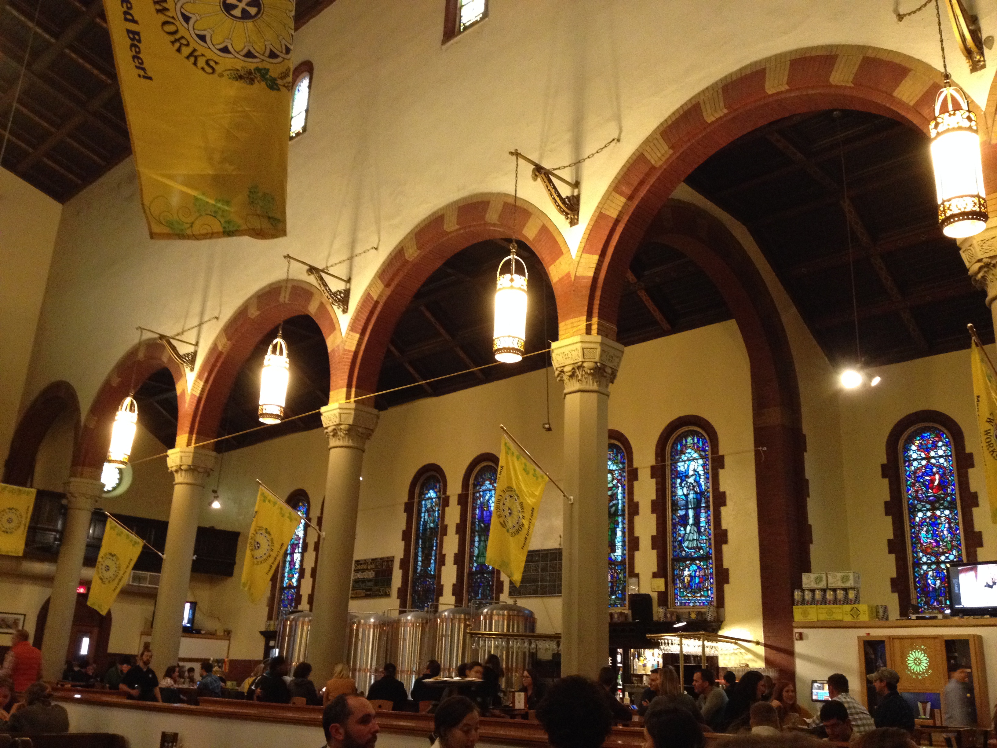 So when they arrived in Pittsburgh, Jim and I went to pick them up at their hotel downtown, and our first stop was Church Brew Works in Lawrenceville. We picked this church-turned-brewpub because Jim and I had never been there ourselves, and I’ve seen it on lists of the best places to eat and drink in the city.