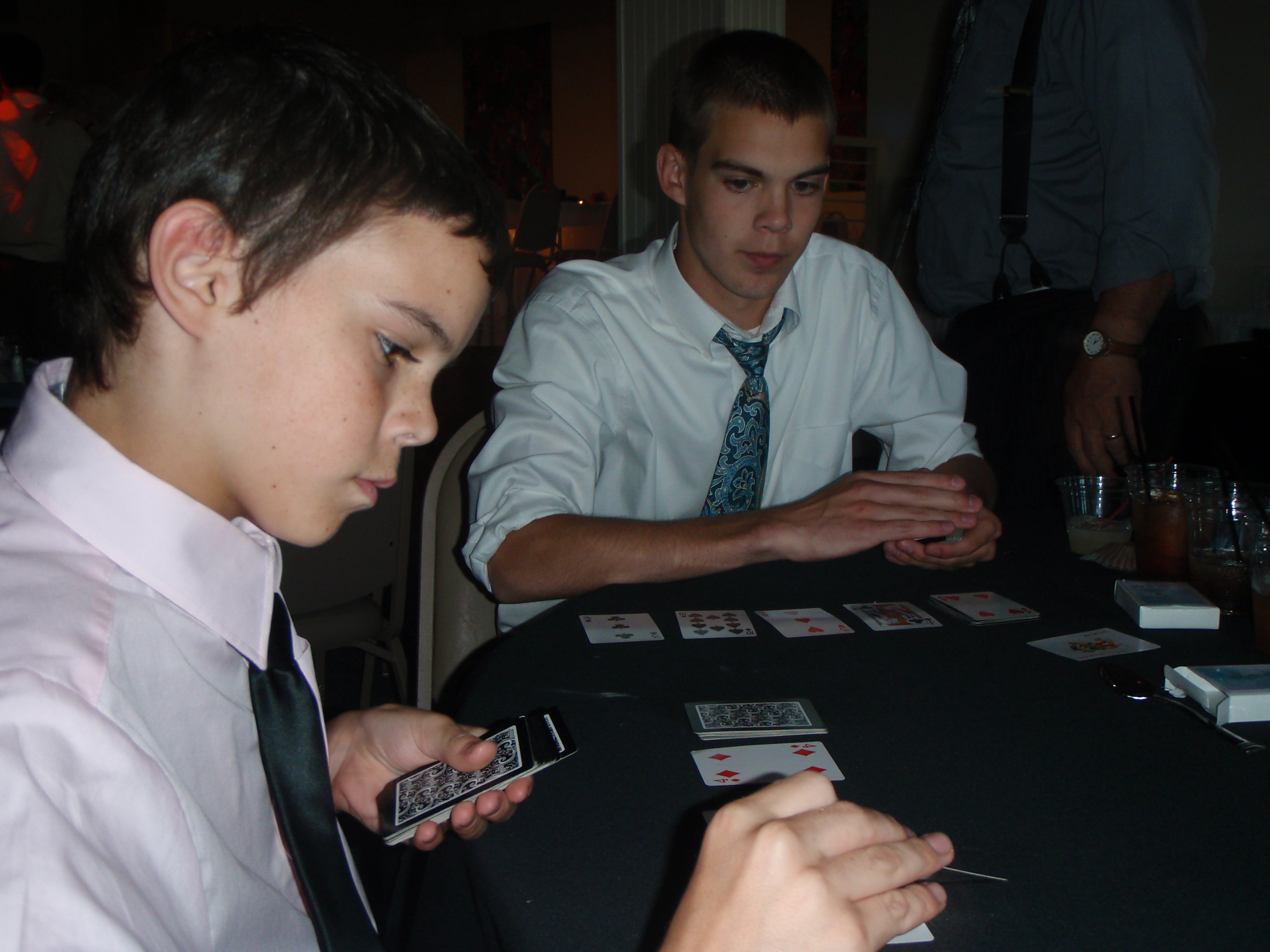 OLYMPUS DIGITAL CAMERAThere was one wedding where the favor was a deck of cards at each place setting. My siblings and I played cards during the songs we didn’t want to dance to. At the end of the night, when most of the other guests had gone home and we were lingering with goodbyes, we snatched up a bunch of the decks that were left behind and stuffed our purses and pockets. We got home with about 25 decks of cards that say “Sarah & Matt.” Now I’ll never need to buy cards again, and I’ll always remember that Matt’s wife’s name is Sarah.